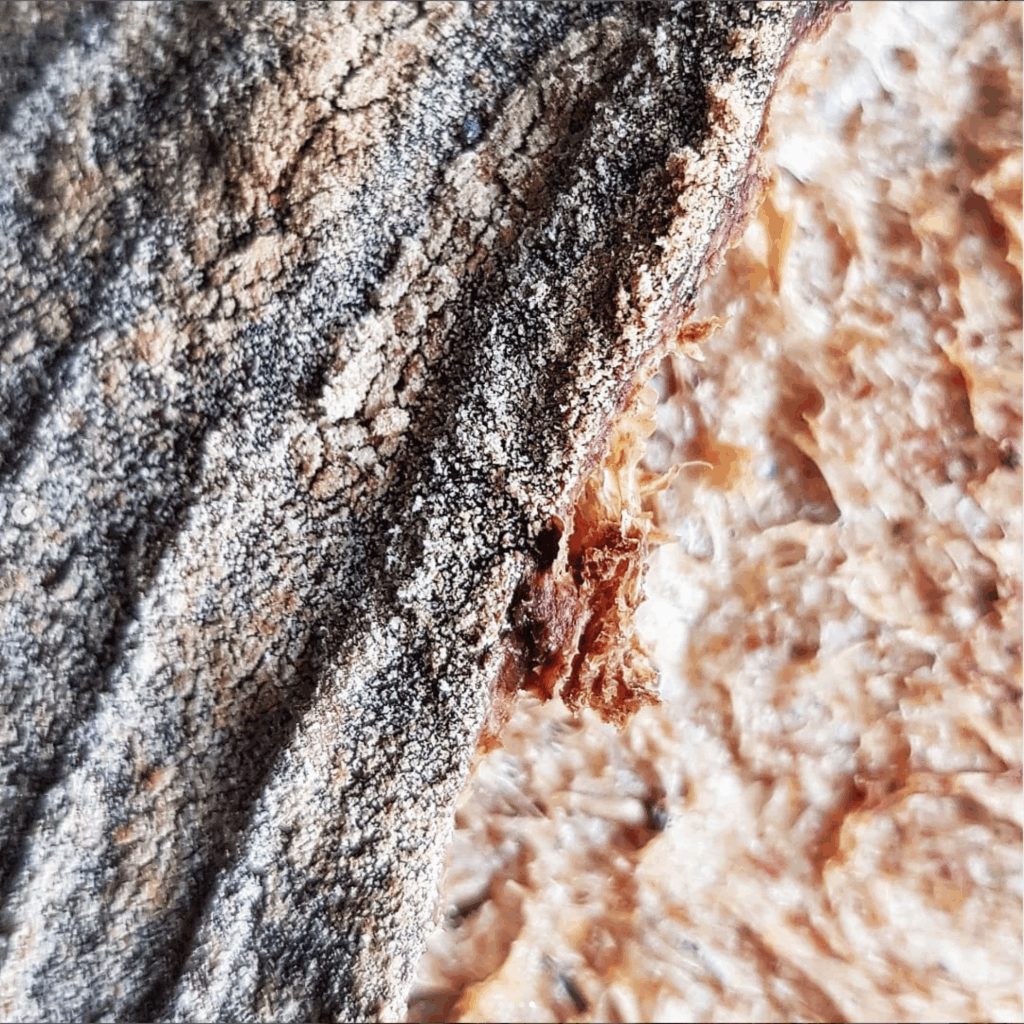 Die Kombination aus Hitze und Luftfeuchtigkeit sorgt nämlich dafür, dass a) die Hefen (vor dem endgültigen Ableben) nochmal buchstäblich Vollgas geben und das Brot heftig von Innen heraus aufgehen lassen. Während der geschlossene Raum des Bräters die vom Teig abgegebene Flüssigkeit weiter um das Brot wabern lässt, statt sie entweichen zu lassen. Die so befeuchtete Außenseite des Brotes bleibt so länger flexibel und „ausdehnbar“. Und zack, habt ihr toppi Voraussetzungen für eine verdammt geile Kruste!